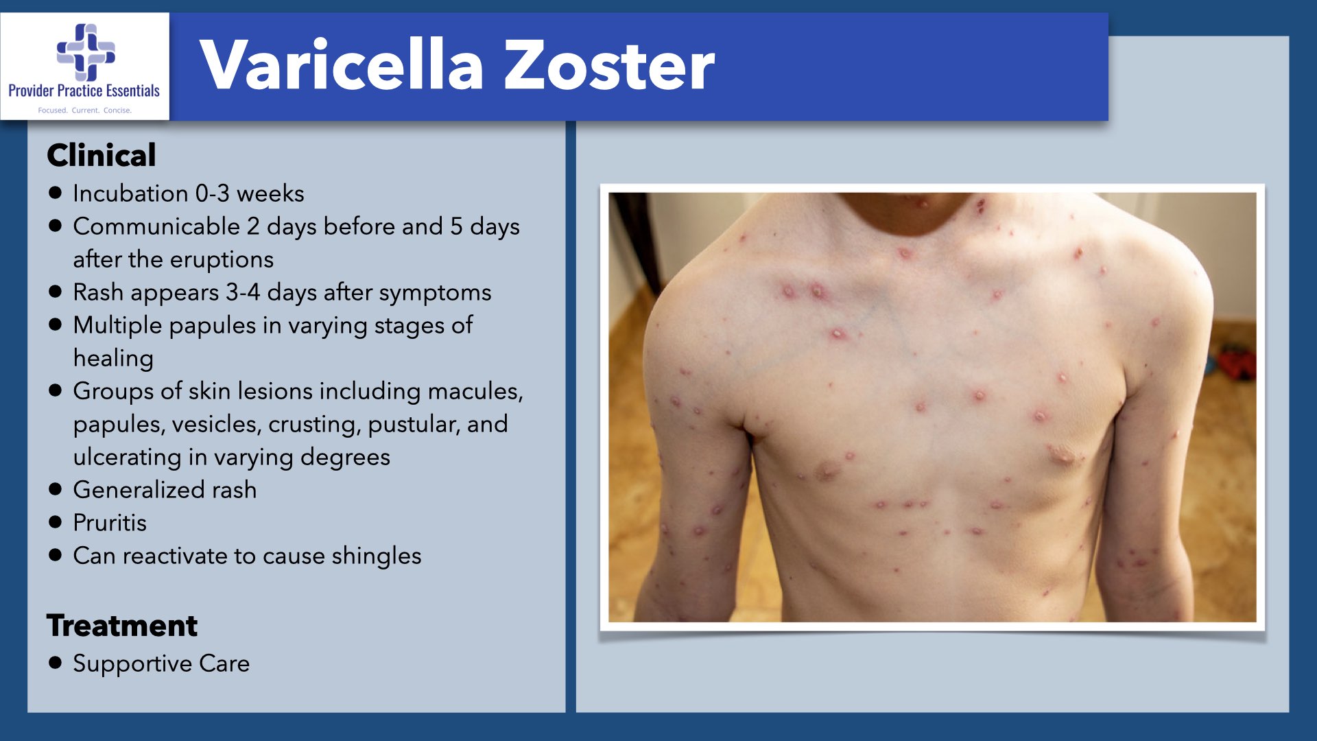 Treatment: Supportive Care Prevention: Varicella vaccine